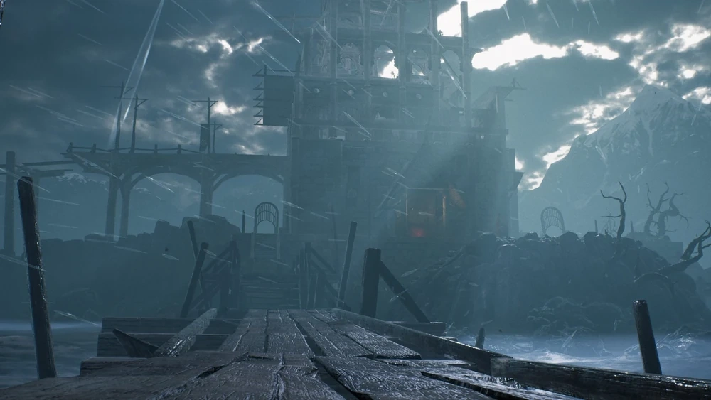 After her encounter with Hela on the bridge to Helheim, Senua is wounded and her sword has been shattered. While lamenting her failure, Senua sees a voice and a vision of a man, who she perceives to be Dillion's spirit. She slowly walks across the beach and reaches a large tree, within which the sword Gramr is trapped. Senua attempts to pull the sword from its resting place, but is unable until she reforges it, by surviving Odin's trials at the four glowing metal runestones around the tree.